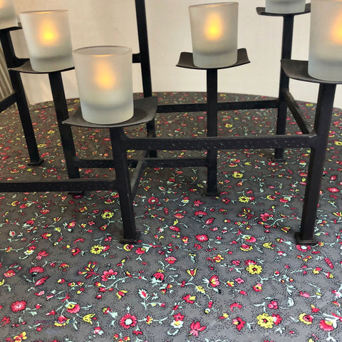 Provence Cotton Tablecloth - Olive Mimosa Red Round - Le Cluny
